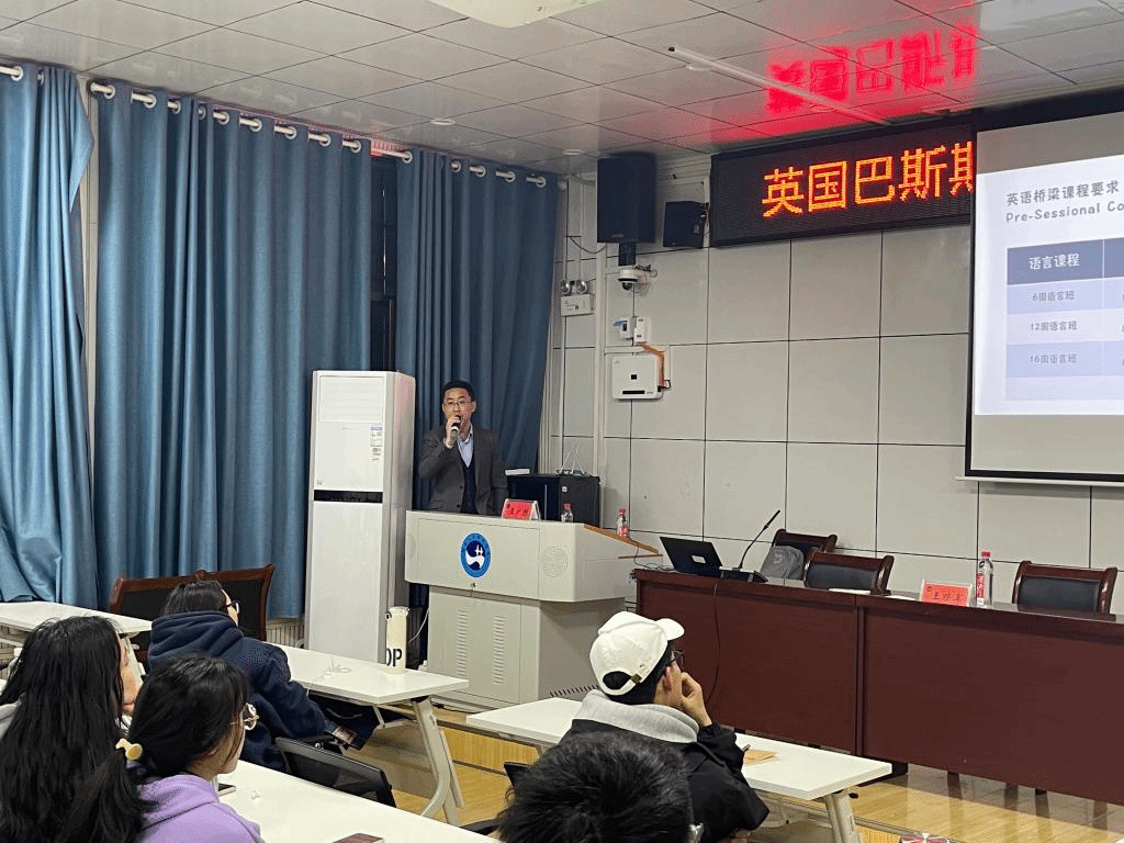 讲座中,王广胜图文并茂地向师生介绍了英国巴斯的风土人情、巴斯斯巴大学的学科及专业设置、学校授课与教学方式、大学为留学生提供的各项支持服务、学生宿舍、升学途径等,并就学生在留学申请、专业选择、海外生活等方面产生的疑问进行了详细解答。最后,王广胜播放了KY官网往届学生在巴斯斯巴大学学习生活的视频集锦和经历分享,勉励学生努力学习奋斗,不断提升自己的专业能力与综合素质。
