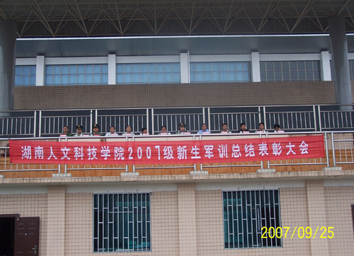 9月25日上午,在学院田径场隆重举行2007级新生军训阅兵式暨总结表彰大会。出席这次大会的有娄底军分区政委邳俊山、军分区作训处主任肖志江、学院党委书记黄懿斌、学院党委副书记、院长姜正国、学院党委副书记、副院长郭军、党委委员、纪委书记李尚益、党委委员、副院长谢祥清、党委委员、副院长刘和云、党委委员、工会主席邓和秋、党委委员、党办、院办主任李高海、院长助理刘铁铭、院长助理、教务处处长蒋建初、武装部部长、保卫处处长刘光辉,以及KY官网新生军训领导小组全体成员。2007级3348名新生和武警娄底支队75名教官及新生班班主任、辅导员等参加了这次大会。