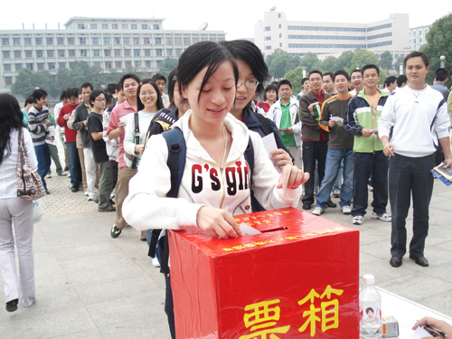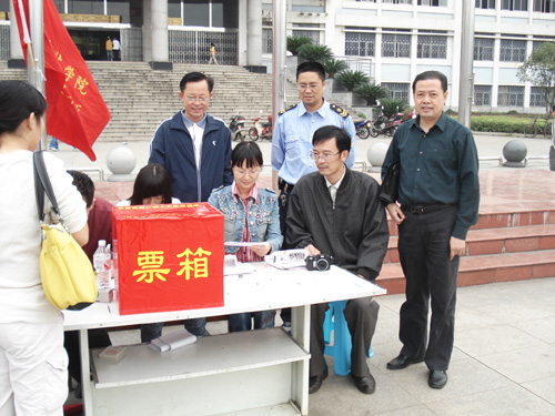 10月12日上午,参加此次投票选举工作的全院9500多名师生员工分16个地点进行了投票。各投票点按单位分区,各党总支书记为选点负责人,每个选点配工作人员3人。经过学院选举工作领导小组的全面检查,各选点选举投票工作进展顺利。全院师生秉着合法、负责的态度和参政议政的精神参加了这次选举投票。