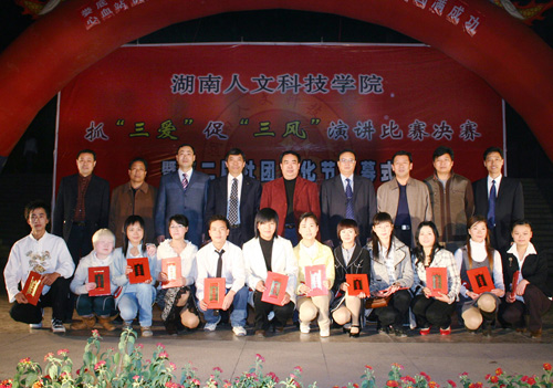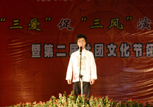 成功晋级决赛的12名选手是通过系级、院级初赛从百余名选手中脱颖而出的佼佼者。选手演讲风格迥异,个性飞扬,以“爱校、爱师”为主题,讲述了身边一个个感人肺腑的故事,表达了对学校的热爱,对老师的深爱。通控系朱青雯《饮水思源感怀师恩》声情并茂,化学系刘维帅《让“三爱”之风吹遍和谐校园》慷慨激昂,中文系刘健梅《爱在这里播种》感人至深,而计算机系李伟的《日月换新天》紧扣“三爱”促“三风”主题,振奋人心!比赛中,三位老师的友情参与将比赛推向了一个高潮。在“三爱”促“三风”青年教工演讲比赛中获第一名的纪忠璇老师以《爱生如子》、全省优秀教师胡瑾以《无悔的选择,不懈的追求》讲述了身为老师的故事,诉说了甘为人梯的心声,感人肺腑,催人泪下。比赛现场,充满了浓浓的师生情谊。