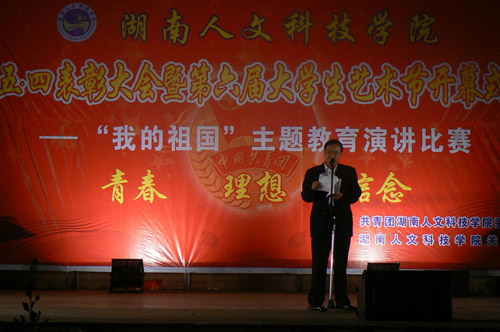 5月4日晚7:30,学校师生在海园广场隆重集会,纪念“五四”运动90周年,共同庆祝第60个青年节,并举行了“五四”表彰大会暨第六届大学生艺术节开幕式和“我的祖国”为主题的演讲比赛。活动由院团委和关工委联合主办。在家的校领导以及中心血站站长胡益同志和校团委、学生处、武保处、各专业系领导出席了此次会议。
