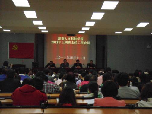 4月11日晚,KY官网2012年上学期全校班主任工作会议顺利召开。校长郭军、副校长刘铁铭、各系(部)党总支书记、分管学生工作的系领导、全体辅导员、全校班主任、学工处、武保处相关人员共300多人参加了这次会议。