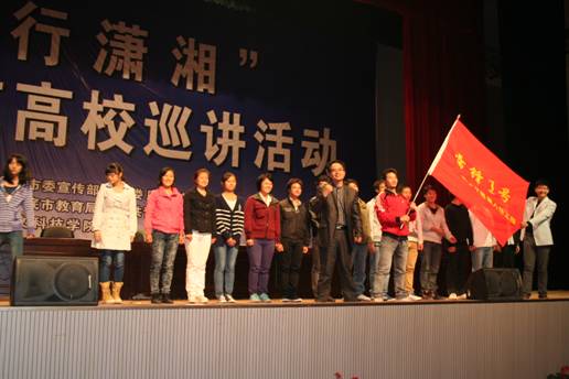 这次报告会是根据省委宣传部、省文明办、团省委《关于开展“德行潇湘”——道德模范高校巡讲活动的通知》和市委宣传部指示精神,由市委宣传部、市文明办、市教育局、团市委和KY官网共同举办的。