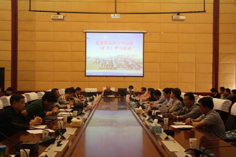 10月8日下午,学校党委理论学习中心组(扩大)学习会议在图书馆第一会议室举行。会议学习了习近平总书记在全国宣传思想工作会议上的重要讲话,并就学校即将开展的党的群众路线教育活动进行了研究部署。全体校领导和各专业系(部、院)、各机关教辅部门主要负责人参加学习,校长郭军主持学习会议并做重要讲话。