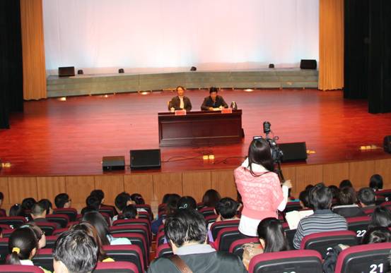 刘和云校长发表总结讲话。他高度评价了陈代富的报告,他说时代造就英雄、社会需要典范,陈代富以朴实的语言,以实际行动诠释了共产党员心系群众生活、为群众办实事、办好事的情怀。他的感人故事让KY官网师生受到了一次深刻的群众路线教育。(文图:罗建兵)