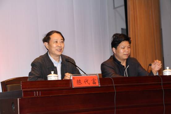 陈代富作了《让员工过上好日子是我的天职》的精彩报告。1999年,陈代富受命于危难之际,从长沙回到冷水江钢铁总厂担任厂长。他以一个共产党员的责任和担当,率领员工转变观念,加强管理,改革创新,历尽磨难,在激烈的市场竞争中,找到应对困难和挑战的办法。经过14年的拼命奋斗,终于使企业扭亏为赢,目前企业有子公司7家,员工8000人,资产总值120亿,年销售收入300亿,14年为国家纳税51亿元。他的先进事迹感动了许多人,被媒体誉为“用生命做企业的企业家”。