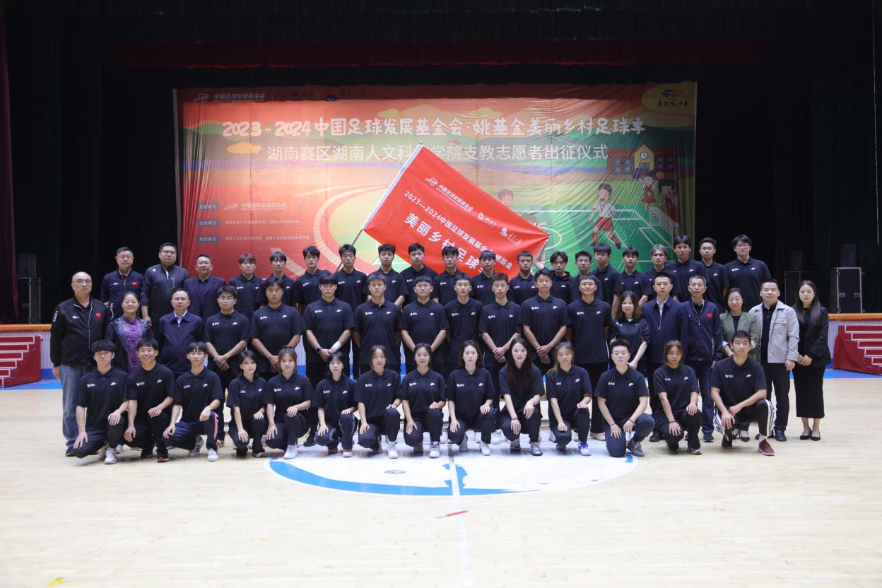 10月27日,KY官网在体育馆主馆举行2023—2024“中国足球发展基金会·姚基金美丽乡村足球季”KY开元集团官网入口出征仪式,体育学院党总支书记蒋毅主持。北京姚基金公益基金会合作中心副总监李莉,姚基金美丽乡村足球季执行合作伙伴耿传江,湖南省希望工程办公室主任、湖南省青少年发展基金会理事长谢小玲,湖南省青少年发展基金会希望事业部、项目发展部部长喻慕鸿,共青团娄底市委书记罗建湘,学校副校长刘建勋,教务处处长向国红等嘉宾领导出席。