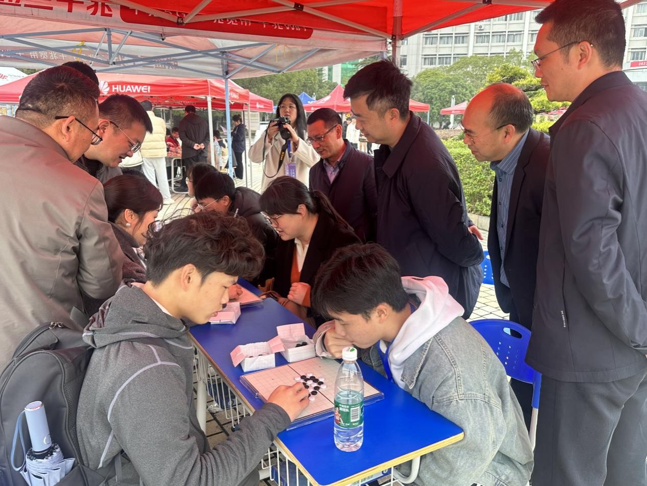开幕式后,领导老师们来到海园广场“数学游园会”现场指导。“数学游园会”以魔方挑战赛、文字与数字、象棋挑战赛、相邻数、一起来猜谜、巧算24点等活动为载体,来自各学院不同专业的学生们踊跃参加各项活动。