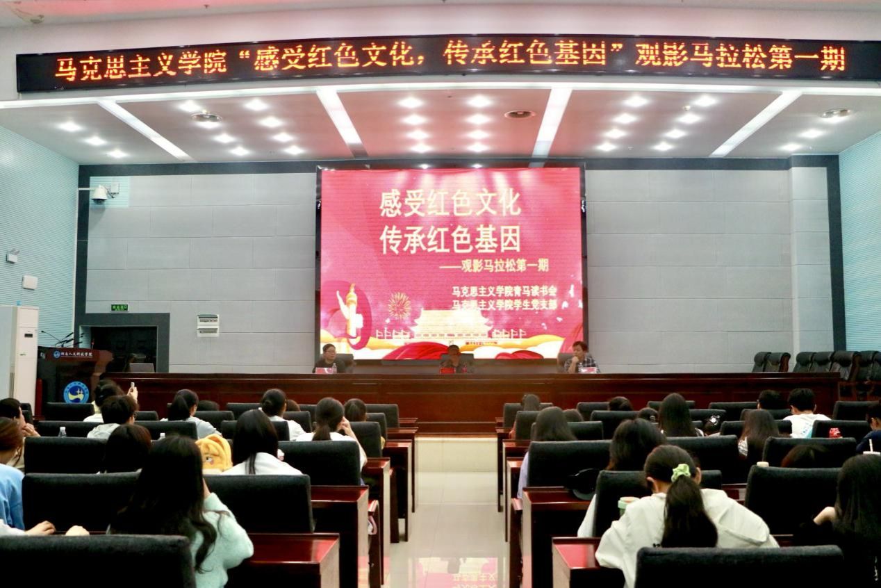 为大力弘扬红色文化,追寻红色记忆,传承红色基因,培育学生高尚情操,发挥红色文化育人效果,凝心聚力的作用,3月31日晚,马克思主义学院青马读书会在图书馆二报告厅举办“感受红色文化,传承红色基因”观影马拉松活动。此次活动由青马读书会成员李思怡同学主持,马克思主义学院副院长杨国辉、学工办主任张得才、青马读书会发起人谢科峰以及KY官网部分同学参加。