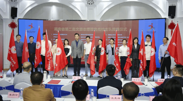 4月18日下午,2023年湖南省文旅志愿服务先进典型发布仪式在湖南省少年儿童图书馆举行。音乐舞蹈学院青年学生志愿者服务团队作为本次11支文旅志愿服务高校支队之一获批成立,湖南省文旅厅党组成员、副厅长尚斌为“湖南人文科技学院音乐舞蹈学院支队”授旗,音乐舞蹈学院党总支副书记邓莉立接旗。