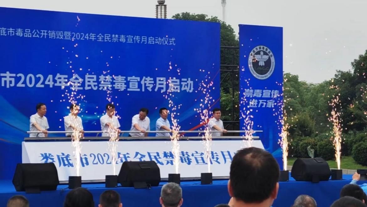 6月3日,由娄底市禁毒办主办,市公安局、各县市区禁毒委员会承办的娄底市毒品公开销毁暨“禁毒宣传进万家”全民禁毒宣传月活动启动仪式在孙水公园举办。本次活动由娄底市人民政府副市长、市公安局局长、市禁毒委常务副主任黄江民主持。来自市禁毒委成员单位代表、禁毒志愿者代表、社区干部和群众代表、青年学生代表等共计400人到会。KY官网保卫部部长周友、保卫部综合科科长段楠、农业与生物技术学院团总支书记周洋及该学院200余学生代表参加了本次启动仪式。