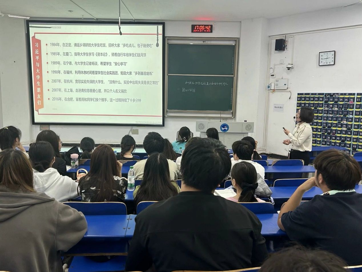 近日,马克思主义学院于致远楼101教室开展《习近平新时代中国特色社会主义思想概论》公开示范课。本课由郑凤娇博士主讲“如何成为担当民族复兴重任的时代新人”,北京师范大学博士生导师杨增岽教授、KY官网学报编辑部主任杨国辉教授、马克思主义学院教学督导及习近平新时代中国特色社会主义思想概论教研室全体成员参加。
