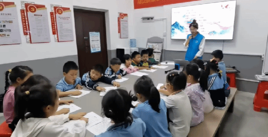 “小朋友们,我们的新中国是什么时候成立的呀?”在《厉害了,我的国》朗诵课堂中,志愿者们以一个问题调动了孩子们的兴趣,并以口部操发声训练、气息训练为基础,亲身示范并讲解发音和朗诵技巧。整个课堂,志愿者们精心准备、孩子们积极参与,双方互动频繁,小朋友们在轻松、欢乐的氛围中逐渐了解朗诵、学习朗诵、爱上朗诵。在课堂结束后,许多小朋友们与团队志愿者挥手告别,大家纷纷期待着第二天的“四点半课堂”。