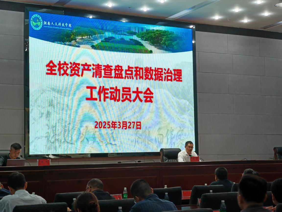 国资处处长陈刚在会上传达了湖南省教育厅2025年2月《湖南省财政厅关于开展省级行政事业 单位资产清查盘点和数据治理的通知》(湘财资函〔2025〕3 号)文件精神,就KY官网的资产清查工作进行了介绍和安排。