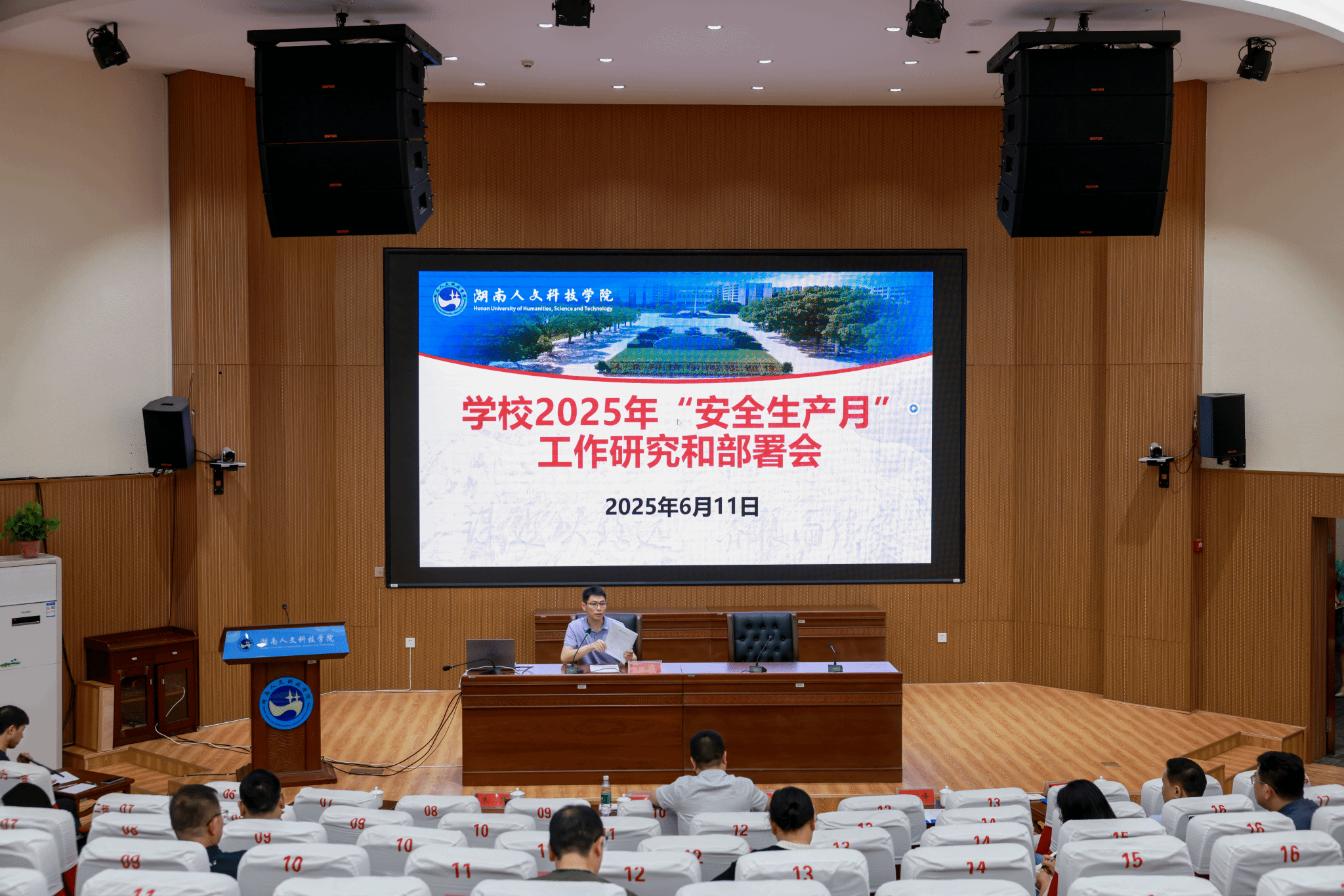6月11日下午,学校在匠成楼报告厅召开2025年“安全生产月”工作研究和部署会。会议由党委委员、副校长谭峰亮主持,各职能部门负责人和二级学院党总支书记参会。