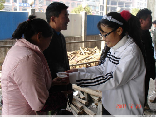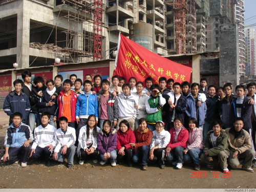 12月19日,物理与信息工程系07级电信一班在东方豪苑二期施工工程工地进行了一次主题为“温暖送工地,情系农民工”的团活动。