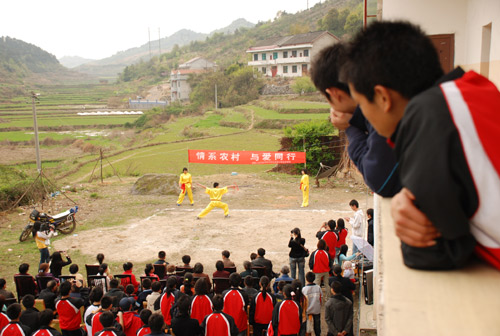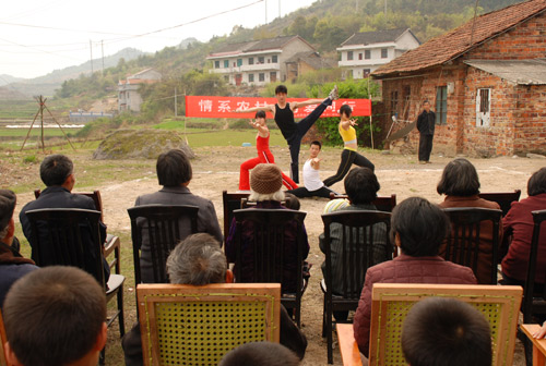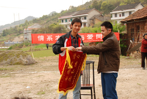 3月25日,体育系07级社体班全体同学在系领导、班主任带领下,在山青水秀的大科乡水洋村村活动中心举行了一场别开生面的慰问演出活动。简陋的舞台并未影响同学们激情表演,热烈奔放的健美操、刚劲矫健的武术、时尚动感的T台秀、朴实感人的话剧,并与水洋村小朋友积极互动……赢得了村民的热烈掌声。我系学生向村里留守儿童赠送了慰问金,并为当地困难户送去了生活用品,水洋村村委会也赠送 “心系山村、情义精神”的锦旗表示诚挚谢意,充分展示了KY开元集团官网入口与水洋村人民的深厚情谊。
