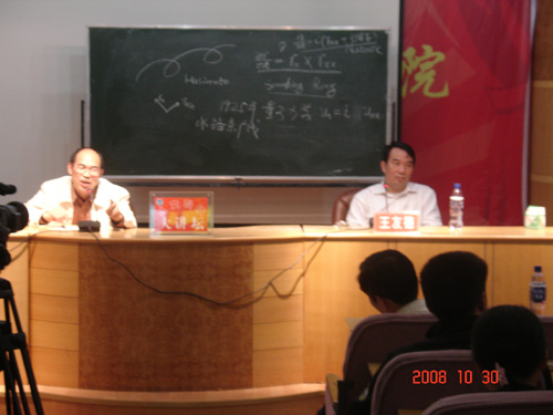 2008年10月30日,中国科学院数学与系统科学研究院博士生导师王友德教授在KY官网现代技术教学楼多媒体报告厅做了《掌握数学灵智的一点初浅体会》。讲座由数学与应用数学系主任陈国华博士主持,参加讲座的有科技处彭秧锡处长、数学系领导、学生辅导员、班主任老师及全体08级学生和部分07级学生。
