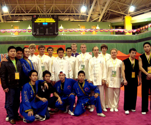 KY官网武术健儿、教练员与部分外国选手赛后合影