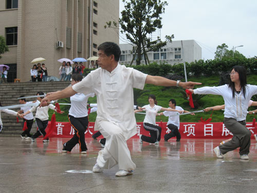 5月26日下午,由体育科学系大学体育教研室主办的首届“大学体育课程展示”活动在海园广场成功举行。此次活动是继大学体育实行选项课教学改革以来的又一举措。此次活动展示了二年级学生的选课项目――健美操、跆拳道、体育舞蹈、散打、太极拳(剑)等,其目的一方面是让08级学生对KY官网大学体育二年级的选项课程性质、特点有一个全面、直观的接触了解,为下一学年度08级学生体育课选项提供一个真实的选择平台;另一方面是通过这些活动,对KY官网大学体育教学改革的实际效果进行一次客观的检验。