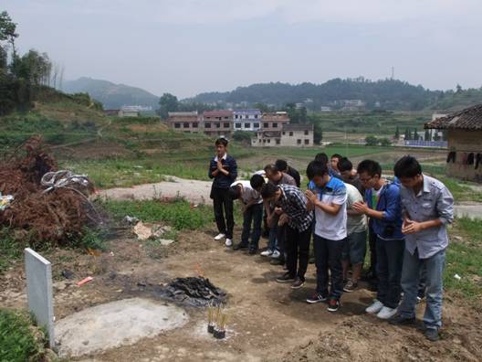 5 月 16 日 ,在蒋小波离开我们一周年的日子里,小波生前所在的物理与信息工程系师生代表及校团委老师共17人前往宁乡墓地,悼念他。并将同学们捐助的1300元钱送到其母亲手中。