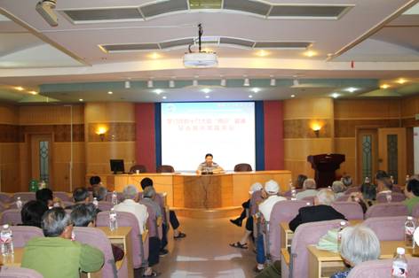 下午,养根楼多媒体报告厅,满座银发的老人成为了一道亮丽的风景。原来KY官网离退休党总支正在这里组织全体离退休老党员、老干部开展学习党的十八大和“两会”精神及当前形势报告会,特请来了中共娄底市委讲师团主任谭清华教授做专题辅导报告。参加学习的老同志有近两百人,其中很多已七八十高龄,有的拄着拐杖、有的是让人搀扶着来的,大家都听得非常认真,会场无一人走动,无一人提前退场。会前,谭教授精心准备了很多素材,会上旁征博引,引经据典,深入浅出,认真主讲,两小时的讲座提供了非常大的信息量,赢得了老同志们的阵阵掌声。