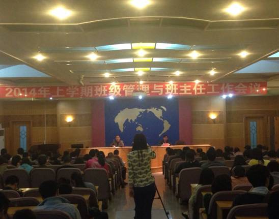 晚,KY官网在养根楼多媒体报告厅召开了2014年上学期班级管理与班主任工作大会。会议由校长助理谢贵辉主持,各系党总支书记、分管学生工作的系领导、全体辅导员、全体班主任、学工处全体工作人员200多人参加了大会。