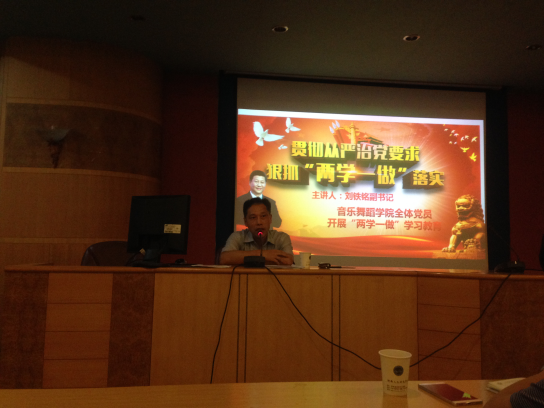 6月14日下午,党委副书记刘铁铭在养根楼多功能报告厅为音乐舞蹈学院党员做了题为《贯彻从严治党要求,狠抓“两学一做”落实》的辅导报告。音乐舞蹈学院党总支书记陈功平主持了报告会。