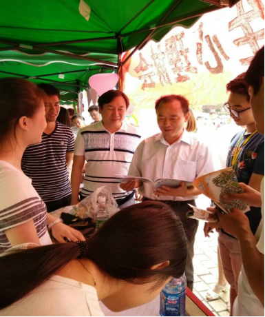 刘铁峰逐一走访了60个社团的招新点,每到一处都亲切的与学生社团工作人员交谈,询问了解社团的发展近况和工作计划。尤其是在全省十佳社团——湘中心理协会的宣传点,他认真翻阅了该协会自主创办的的刊物《心茗》,并希望大家“把杂志内容办得更丰富,把活动办得更有特色,更好地为全校学生的心理健康成长服务。”