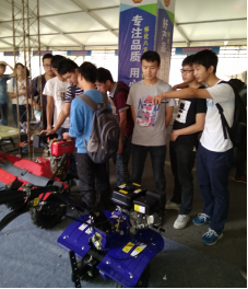 机械设计制造及其自动化15级、材料成型及控制工程专业14/15级同学在陈卫、谭峰亮、汪力、张胜文老师的带领下,先后参观了粮食烘干机、旋耕机、插秧机、装载机、大米色选机等各型农业机械、粮油机械与矿山机械,了解了各机械设备的基本工作原理和使用方法。参观完之后陈卫、谭峰亮两位老师把学生带到高垅航空、郴粮机械等展位前,从产品用途、设计思路、工作原理、零部件加工、发展前景等角度对单旋翼油动型植保机、智能碾米机等设备进行了详细的现场讲解。