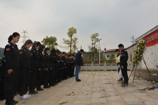 全体队员怀着对革命先烈崇敬之情,在庄严肃穆的纪念碑前举行了悼念仪式,大家整齐列队、神情严肃,向烈士们献花,并默哀3分钟,告慰烈士忠魂,寄托对烈士的无限崇敬。