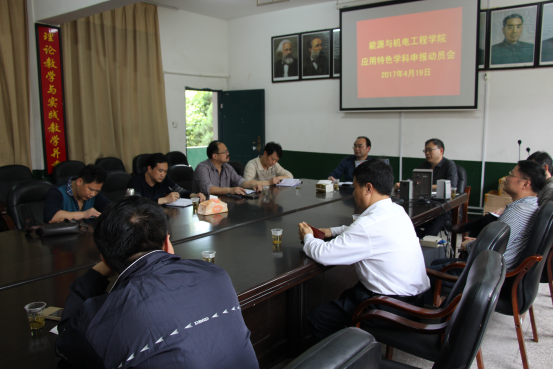 4月19日下午,党委委员、组织部部长金志方率科研处处长彭秧锡、校地校企合作处处长黎建辉来能源与机电工程学院参加党政联席扩大会议并指导学科建设和校地校企合作工作。