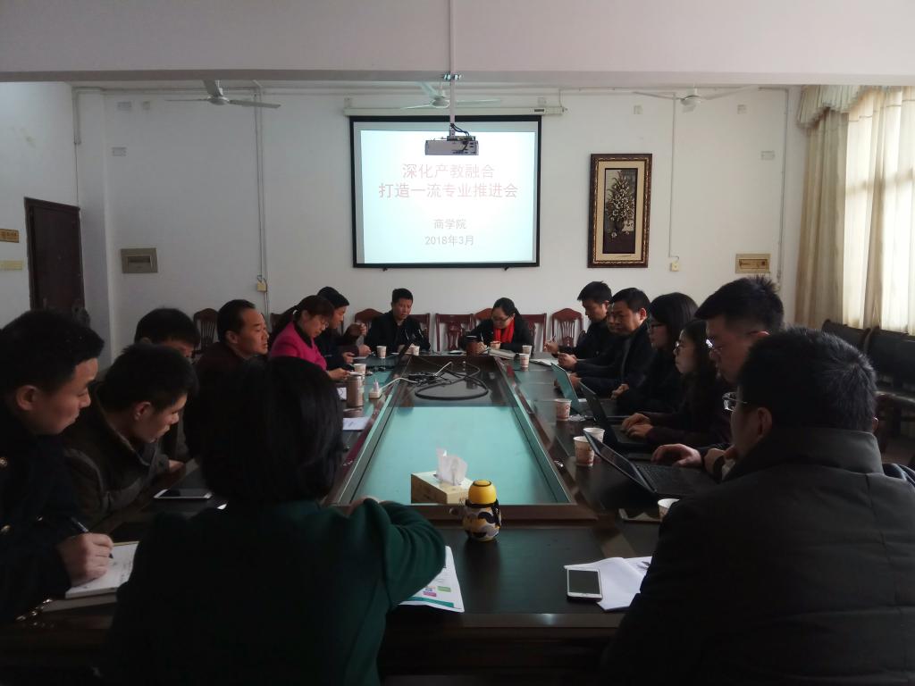 3月21日下午,商学院在同德楼会议室召开“深化产教融合、打造一流专业”推进会。教务处相关人员、金蝶湖南公司负责人、商学院院领导及教研室(实验室)主任参加会议。会议由商学院院长朱强主持。
