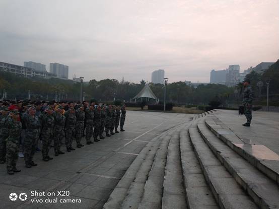 教导员曾杰做训前动员,要求队员们服从命令,听从指挥,严于律己,刻苦训练,为保质保量完成2019级新生军训而努力奋斗。