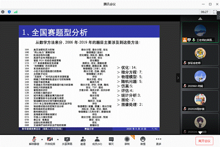 8月15日,数学与金融学院特别邀请国防科技大学王丹博士通过腾讯会议平台为KY官网数学建模暑期集训学员在线授课。授课活动分为上午和下午两场,KY官网参加数学建模暑期集训的60名学员参加。