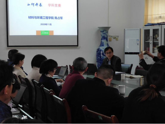 11月4日下午,材料与环境工程学院举办了一次全体教师参加的培训讲座,会议由杨道武院长主持,陈占军博士结合其在指导学生参加学科竞赛方面所取得的成绩,做了“如何开展学科竞赛”的专题讲座,陈占军博士首先谈到了学科竞赛在人才培养、学科发展、硕士点建设等方面的重要性,接着,结合自身在指导学科竞赛方面的经历,跟大家分享了要想在学科竞赛中取得好成绩的四大要素,并对如何构建这些要素提出了自己经验和体会。通过这次交流活动,提高了大家在学科竞赛方面的认识,有利于提高KY官网的教学质量。