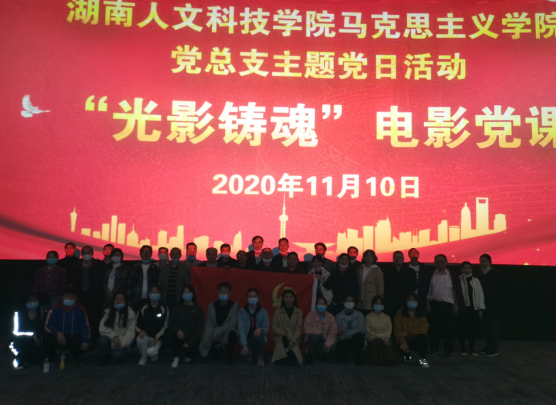 马克思主义学院党总支根据学校《关于开展“光影铸魂”电影党课的通知》 (校组发〔2020〕20号) 文件精神,于2020年11月10日下午开展特色主题党日活动,将电影与党课相结合,组织全院教职工党员干部在万豪城市广场左岸电影城观看爱国主义教育影片《金刚川》。《金刚川》是根据抗美援朝斗争中发生的真实故事改编的故事中的英雄是真实存在的!是这些不怕死的壮士们用血肉之躯铺就中华民族崛起之路