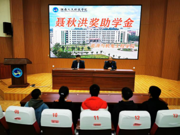 聂秋洪奖助学金由爱心校友聂秋洪先生2019年设立,每年出资1万元,用于奖励5名品学兼优的家庭贫困学生,旨在缓解困难学生的经济压力,激励莘莘学子的鸿鹄之志,培养有理想、有追求、有担当、有作为、有品质、有修养的大学生。颁奖仪式上,聂秋洪先生结合自身毕业后的成长历程,鼓励同学们从容面对人生中的逆境,用一生的努力在为中华民族伟大复兴的奋斗中实现自己的人生价值。颁奖结束后,聂秋洪先生与受资助的5位学生互换联系方式,希望和同学们保持良好地沟通交流,形成良性反馈,更好地为同学们提供帮助。