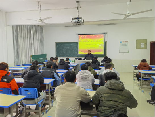 图:教师党员胡东博士为学生党员作“四个表率”的专题报告