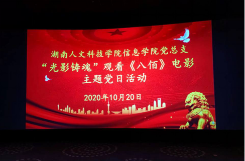 为进一步教育广大党员缅怀英烈、牢记使命,激励广大党员在发挥先锋模范作用中永葆先进性、纯洁性,更好地激发广大党员爱党爱国热情,加强党员党性修养。创新党员教育方式,提升党员教育质量,信息学院党总支认真贯彻落实学校党委指示精神,在10月至11月组织全体党员和入党积极分子开展“光影铸魂”主题党日系列活动,组织观看《半条棉被》《八佰》《烈火英雄》《音乐家》《冰血长津湖》《金陵十三钗》共计六部影片;组织教工党员去韶山观看大型实景演出《中国出了个毛泽东》;以党支部为单位组织观后交流,每位同志都认真撰写了1至2篇心得体会。