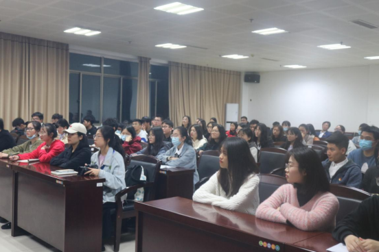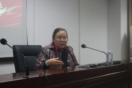 李蓉教授围绕百年辉煌与初心使命这个主题,从中国共产党名称的确定、党组织的发展壮大、自我革命、党组织的先进个人、抗日救亡的斗争以及带领人民走向胜利等方面对党的历史作了较为全面的线性梳理,对中共党史、党的信仰、党领导的必要性和重要性等问题作了深入的分析。随后从党如何解决党内曾经出现过的问题,和党如何化解党组织所面临的的危机两个方面系统的论证了党是如何发展、变化的,也证明了党具有先进性、纯洁性和自我革命性。最后,李蓉教授引用习近平主席讲的九个字来勉励到场的人员:“政治强、业务精、作风正”。李蓉教授在报告中严谨的论证、丰富的学识和富有力量的语言都给党员同志和学生留下了深刻的印象。