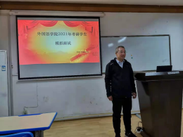 阳春三月,春风送暖。为助力2021年考研学生复试,3月23日晚,外国语学院在播馨楼301举办2021年考研学生模拟面试。院长胡瑾、党总支书记申忠明、教授博士丁志斌、博士刘晓东,邓梦林及考研班班主任罗立斌老师出席。