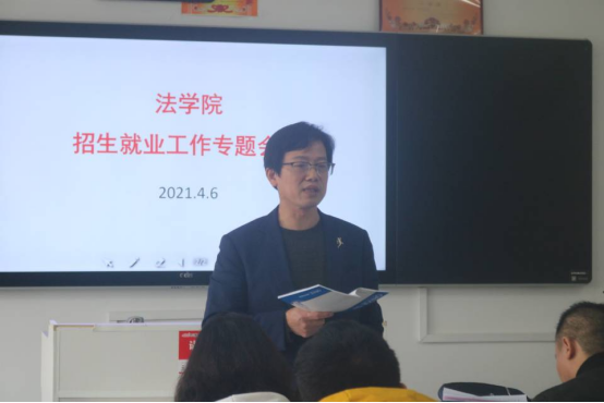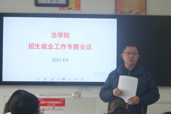 4月6日,法学院在致远楼208教室召开招生就业工作专题会议。法学院全体班子成员及相关教师参加。党总支书记尹钟宏主持会议。