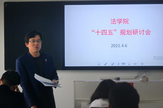 尹钟宏介绍,“十四五”规划立足于“十三五”规划的成果之,根据学校对二级学院规划的相关要求,由法学院党政负责人共同商议启动规划编制的工作,在参考了近几年的重要文献的前提下,此次研讨会得以顺利召开而后,尹钟宏特别强调应将法学院硕士点建设纳入未来规划中去。