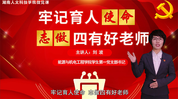近日,省委教育工委公布了“党课开讲啦”活动的优秀党课评选结果,KY开元集团官网入口能源与机电工程学院刘波老师主讲的党课《牢记育人使命,志做四有好老师》获高校组三等奖。