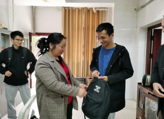 失主是材环学院的一名19级男生,他在领到失而复得的书包后,心情非常激动,向吴二花同志表示感谢。