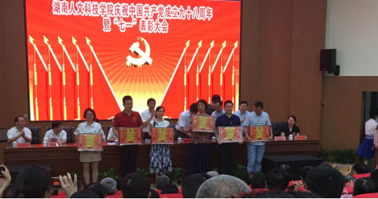 (聂时君所在支部荣获先进党支部,左一)