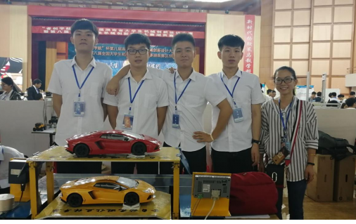 (聂时君指导学生参加湖南省机械创新设计大赛现场,右一)