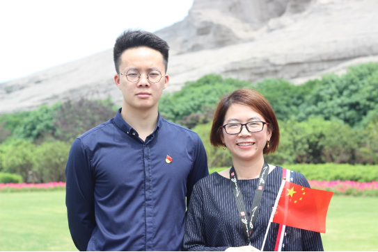 (聂时君和学生党员尹先和参加党员活动,右一)