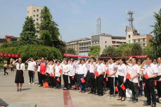 在蔡和森广场,大家胸戴党徽庄严列队肃立,由谭祯、吕孝慈两名学生党员代表向蔡和森一家敬献花篮,谭峰亮、陈佩君两名教工党员代表整理缎带,随后由丁凤带领大家重温入党誓词,在党旗面前,全体党员握拳宣誓,使全体师生党员更加坚定了继续为共产主义事业奋斗终身的信念。